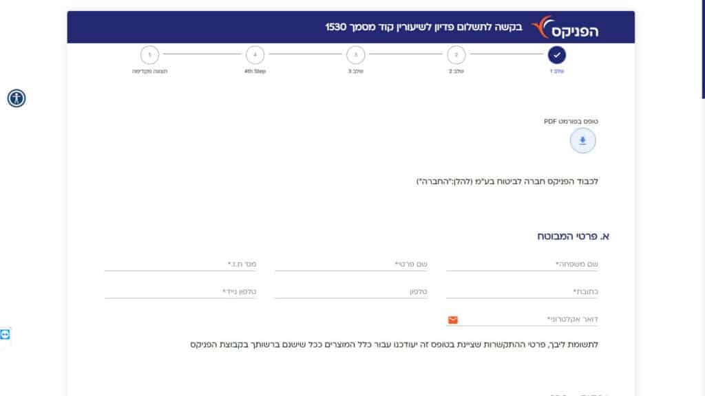 טופס קל » חברות ביטוח » ביטוח הפניקס » תביעות ופידיון » טופס בקשה לתשלום פדיון לשיעורין – ביטוח חיים