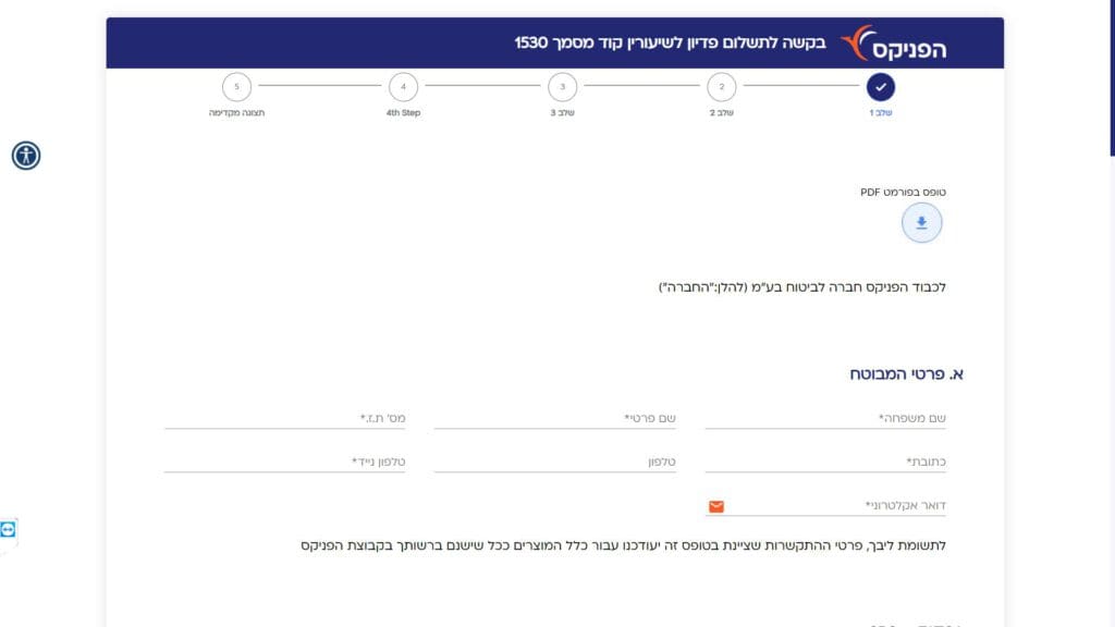 טופס קל » חברות ביטוח » ביטוח הפניקס » תביעות ופידיון » טופס בקשה לתשלום פדיון לשיעורין – מוצרים פיננסים
