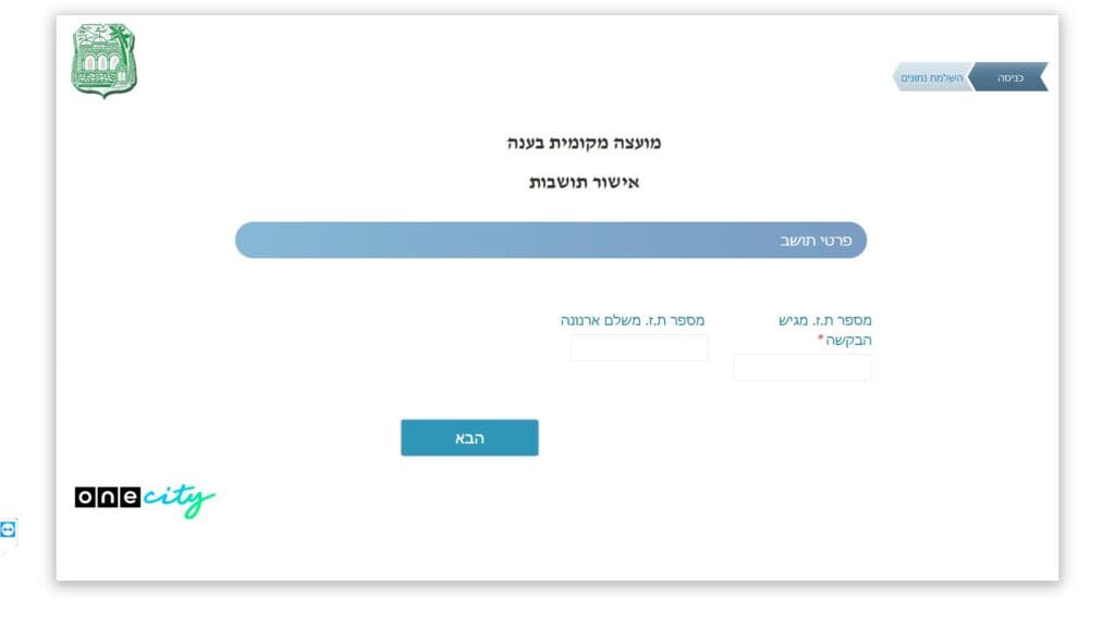 צילום מסך טופס בקשת אישור תושבות טופס מקוון