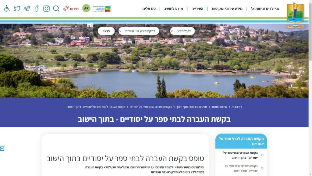 טופס בקשת העברה לבתי ספר על יסודיים בתוך הישוב חלופה נגישה - כרגע לא קיימת.
