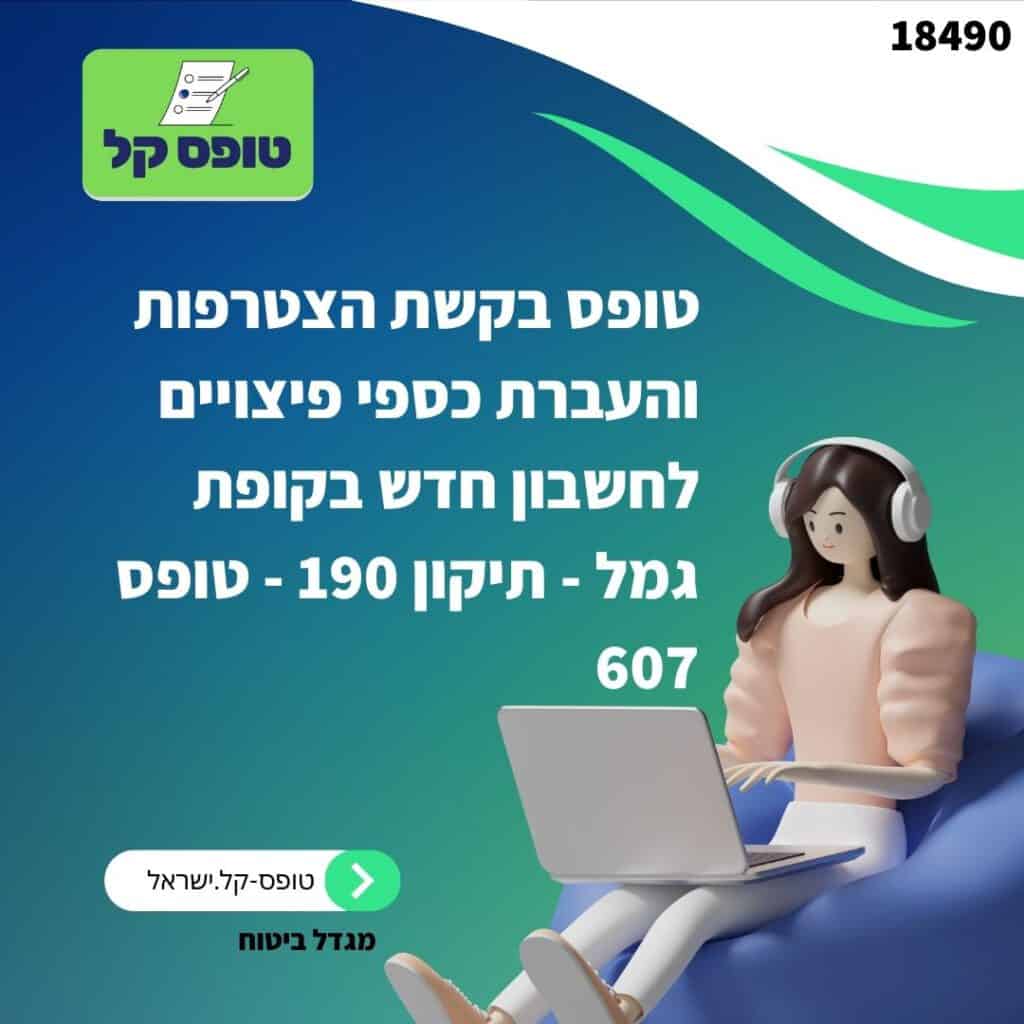 טופס בקשת הצטרפות והעברת כספי פיצויים לחשבון חדש בקופת גמל – תיקון 190 – טופס 607 להורדה, הדפסה ומילוי מקוון