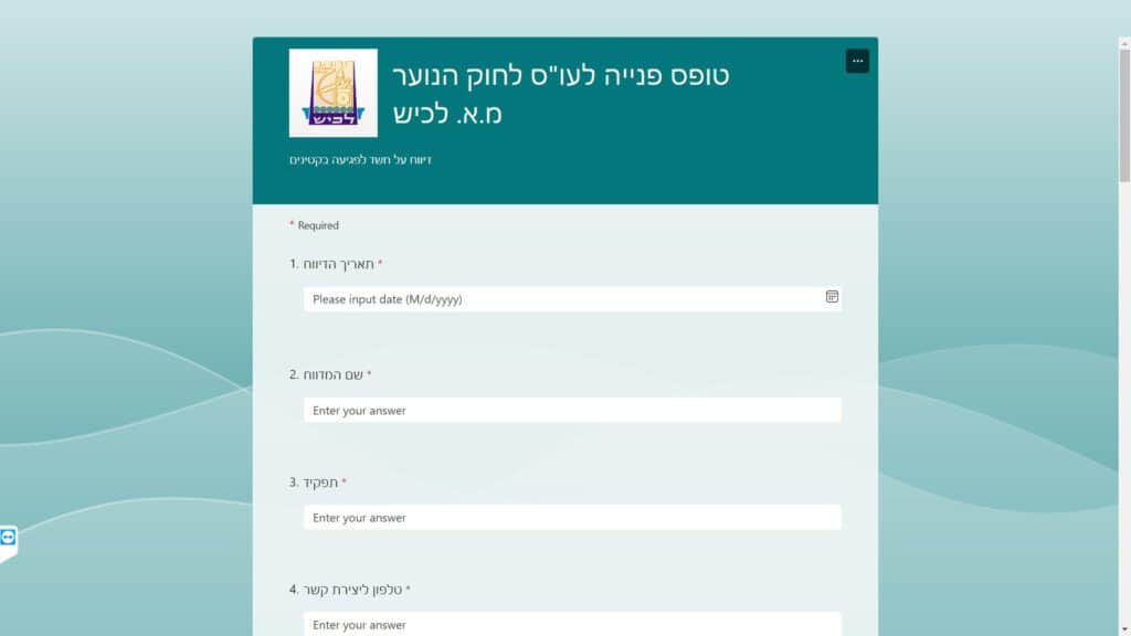 טופס דיווח לעוס לחוק הנוער חלופה נגישה - כרגע לא קיימת.
