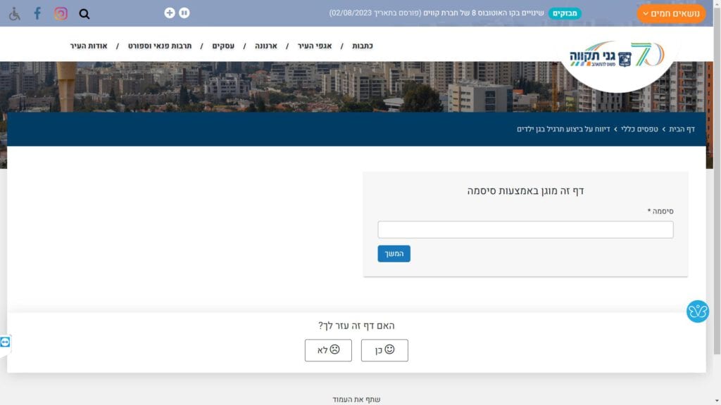 טופס קל » עיריות » עיריות בתל אביב והמרכז » עיריית גני תקווה » ביטחון » טופס דיווח על ביצוע תרגיל בגן ילדים