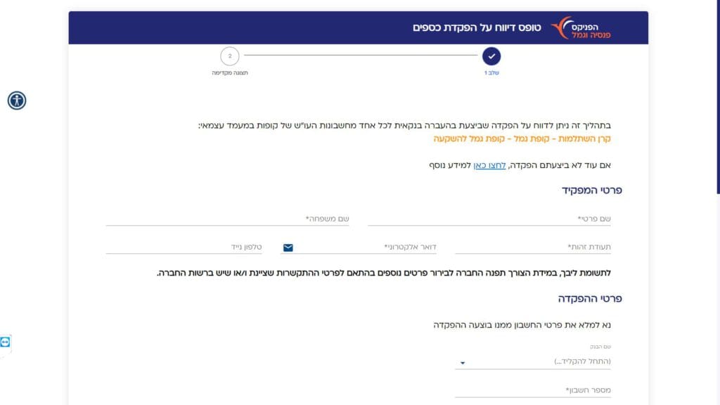 טופס דיווח על הפקדת כספים - השתלמות וגמל חלופה נגישה - כרגע לא קיימת.