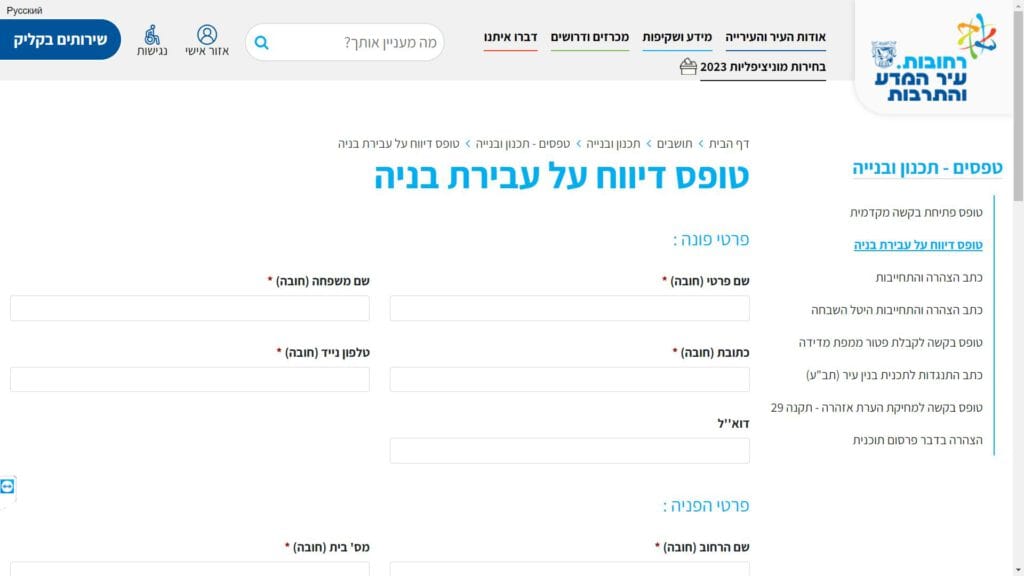 טופס דיווח על עבירת בניה חלופה נגישה - כרגע לא קיימת.
