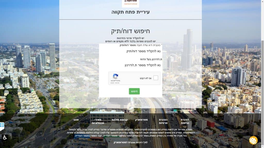 צילום מסך טופס דרישה לתשלום דו"ח טופס מקוון