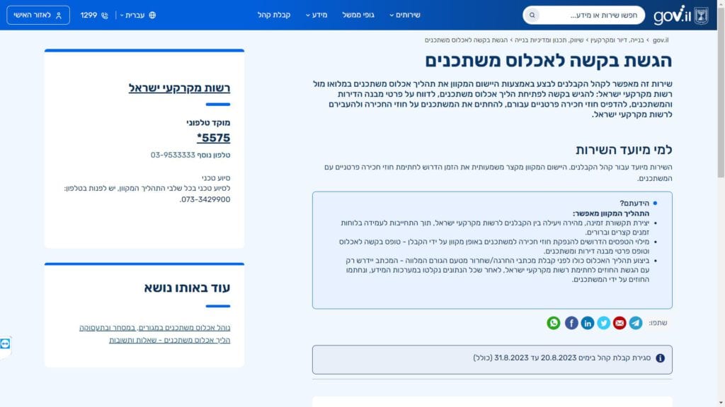 גוף שיתמוך בשאלות על טופס הגשת בקשה לאכלוס משתכנים