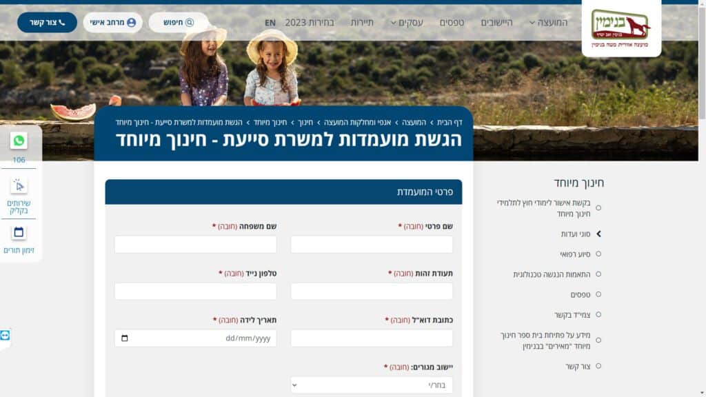 צילום מסך טופס הגשת מועמדות למשרת סייעת טופס מקוון