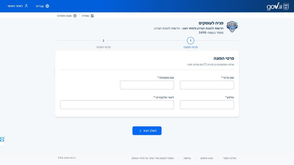 גוף שיתמוך בשאלות על טופס הגשת פניות עוסקים לרשות להגנת הצרכן