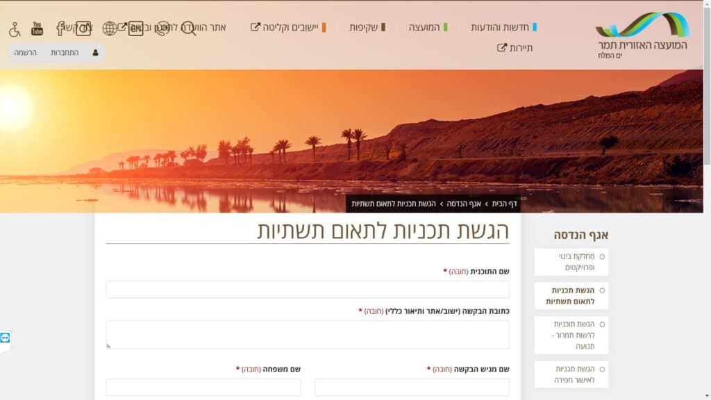 טופס קל » עיריות » עיריות בדרום » מועצה אזורית תמר » הנדסה » טופס הגשת תכניות לתאום תשתיות