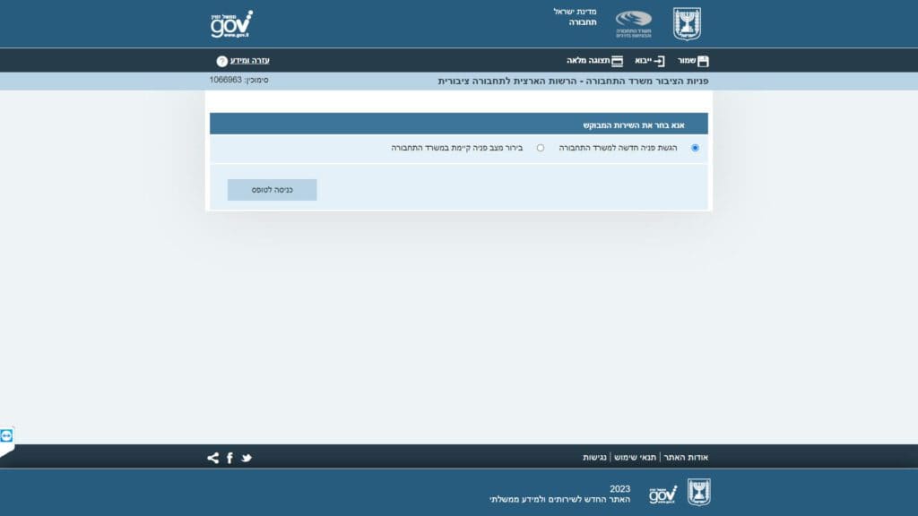 צילום מסך טופס הגשת תלונה על התנהלות בתחבורה ציבורית טופס מקוון