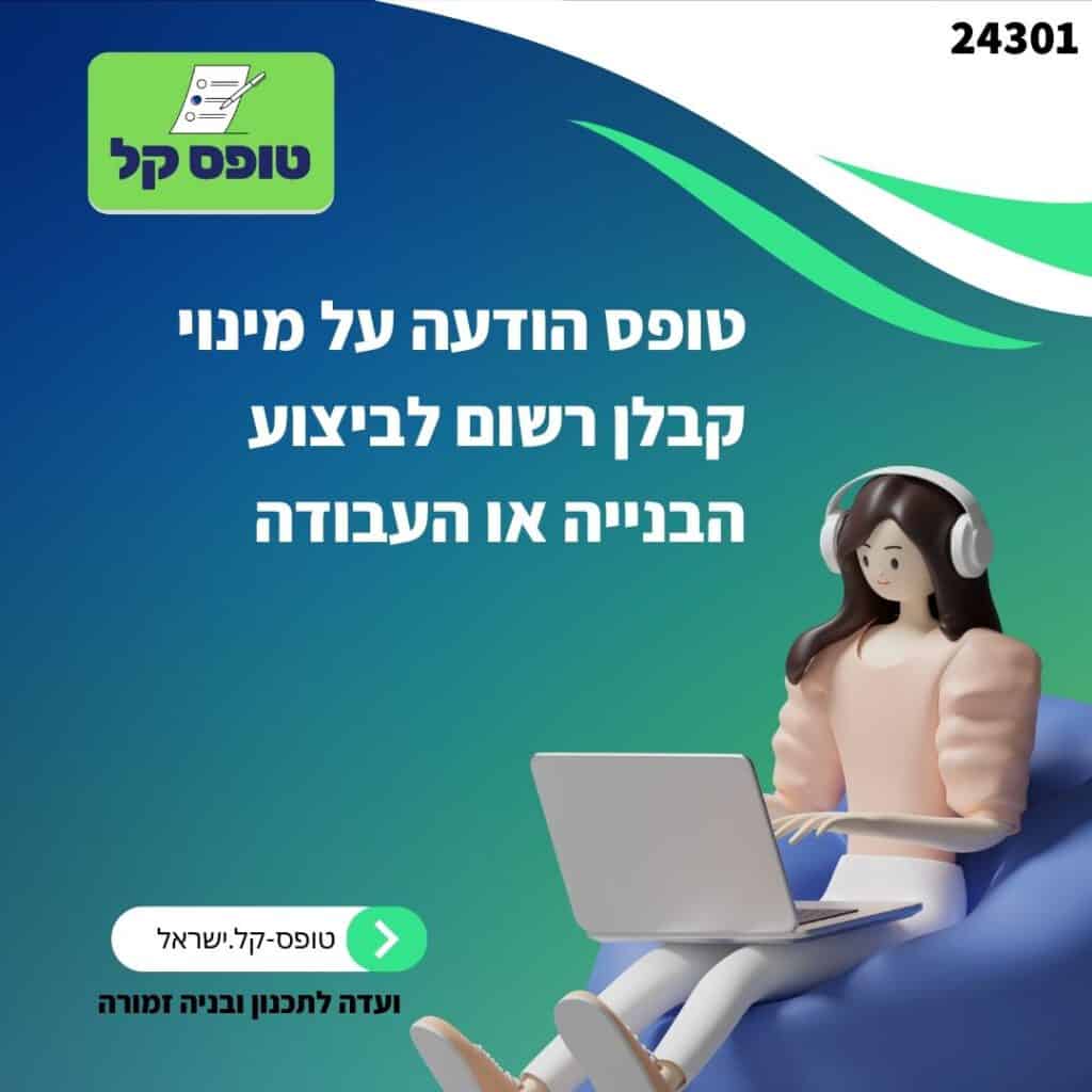 טופס הודעה על מינוי קבלן רשום לביצוע הבנייה או העבודה מילוי מקוון - כרגע לא קיים.