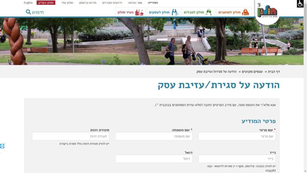 טופס הודעה על סגירת / עזיבת עסק חלופה נגישה - כרגע לא קיימת.