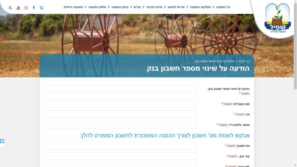 טופס הודעה על שינוי מספר חשבון בנק חלופה נגישה - כרגע לא קיימת.