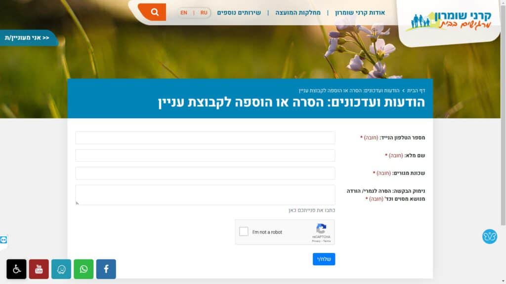 טופס הודעות ועדכונים הסרה / הוספה קבוצת עניין הזמנת טופס בדואר - כרגע לא קיימת אופציה.