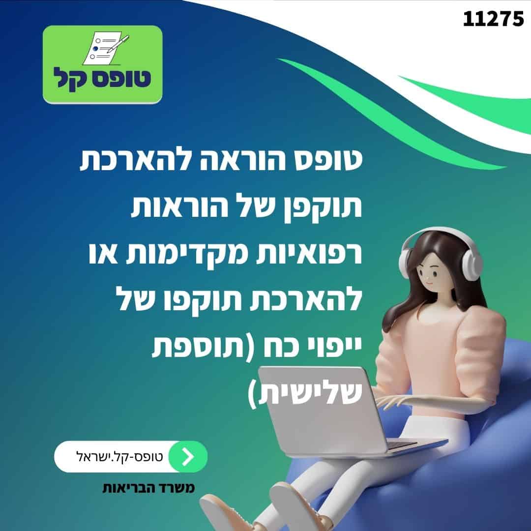 הטופס הנ"ל הוא טופס משרד הבריאות, הנקרא "הוראה להארכת תוקפן של הוראות רפואיות מקדימות או להארכת תוקפו של ייפוי כח תוספת שלישית: חוק החולה הנוטה למות". הטופס מיועד להארכת תוקף הנחיות רפואיות קיימות או של ייפוי כוח שתוקפם פגלפני מילוי הטופס. במילוי הטופס יש למלא פרטים על ההנחיות המקדימות או היפוי הכח הנמצאים בתקופת התוקפם הנוכחית, ולציין אם יש הארכת תוקף באמצעות בחירת אחת מהאפשרויות הניתנות (הארכת הנחיות רפואיות מקדימות, הארכת תוקפו של ייפוי כח, או שלילת האפשרות להאריך את התוקף).