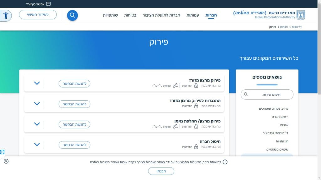 הטופס שייך לקטגוריות: יחידות ממשלתיות, רשות התאגידים