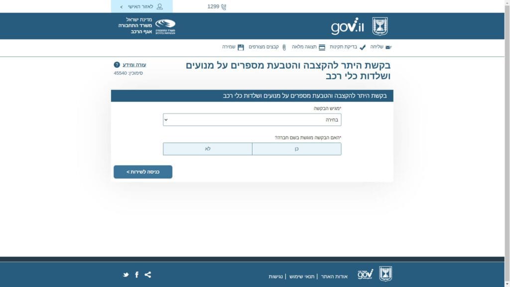 טופס קל » משרדים ממשלתיים » משרד התחבורה והבטיחות בדרכים » טופס הטבעת מספר על מנוע או שלדה