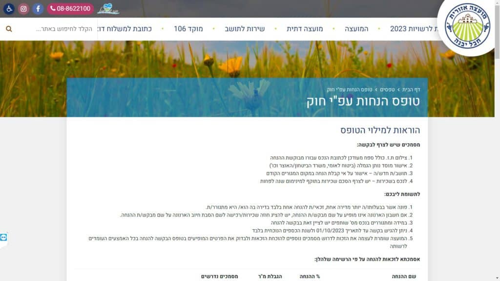 גוף שיתמוך בשאלות על טופס הנחות עפ"י חוק