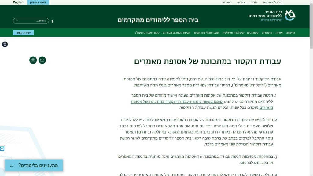 צילום מסך טופס - הנחיות להגשת עבודת דוקטור המורכבת ממאמרים טופס מקוון