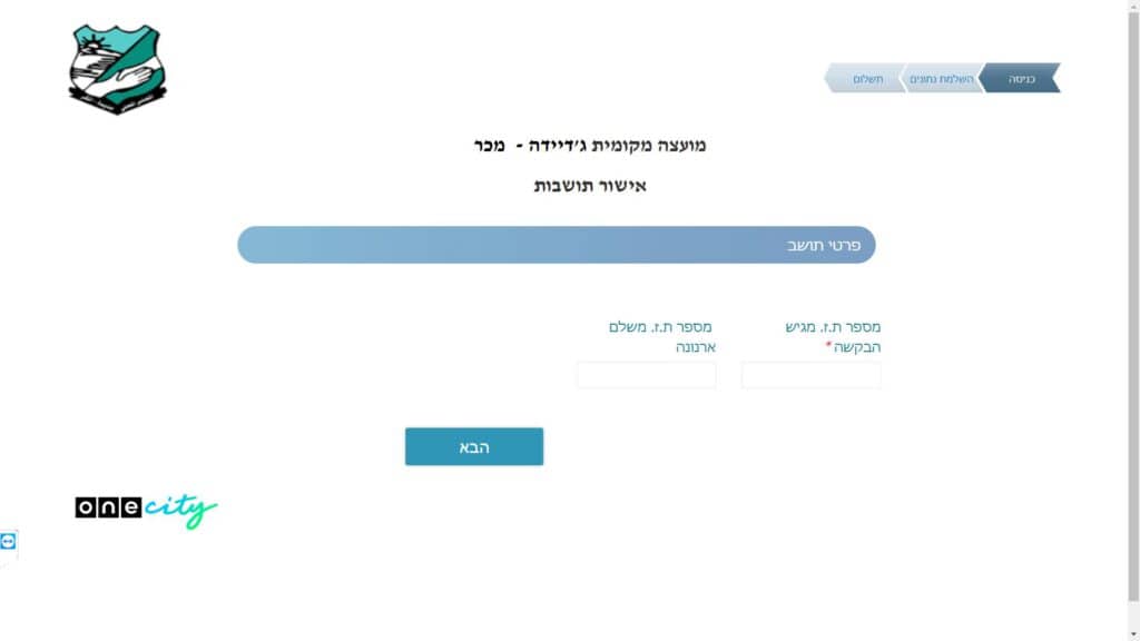 צילום מסך טופס הנפקת אישור תושב טופס מקוון
