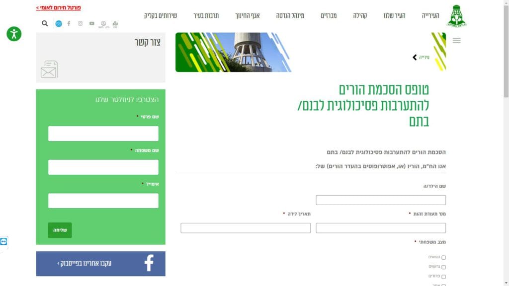 צילום מסך טופס הסכמת הורים להתערבות פסיכולוגית לבנם / בתם טופס מקוון