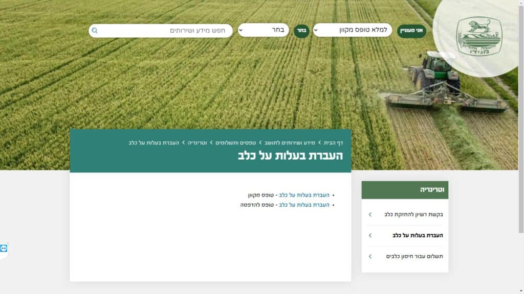 צילום מסך טופס העברת בעלות על כלב טופס מקוון