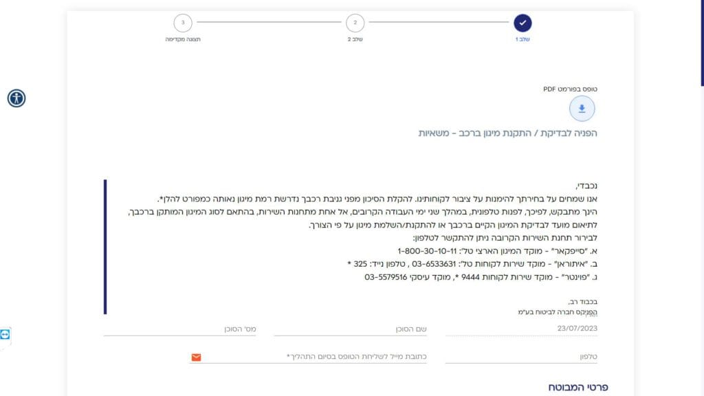 טופס הפניה לבדיקת / התקנת מיגון ברכב - משאיות - ביטוח כללי חלופה נגישה - כרגע לא קיימת.