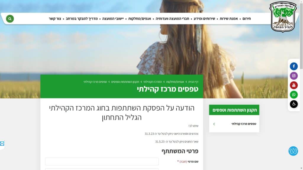 לפניכם כל המידע שתחפשו על טופס הפסקת השתתפות בחוג / צהרון. כאן תוכלו למצוא קובץ PDF של הטופס, מקורות מידע, חלופה נגישה לטופס, מילוי טופס מקוון אונליין, ומידע על הגשת הטופס באינטרנט.