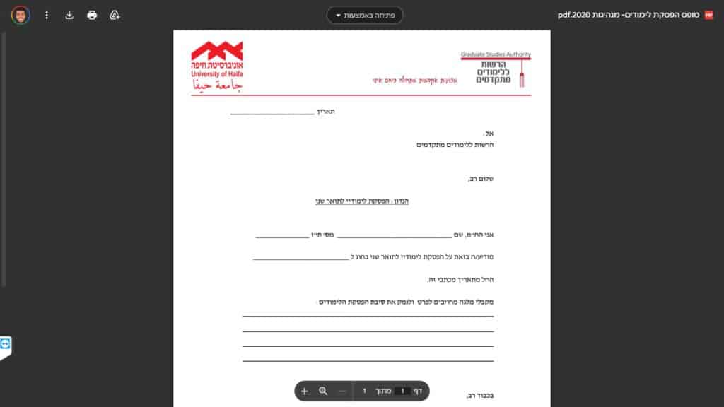 טופס הפסקת לימודים להורדה והדפסה - כרגע לא קיים טופס PDF.
