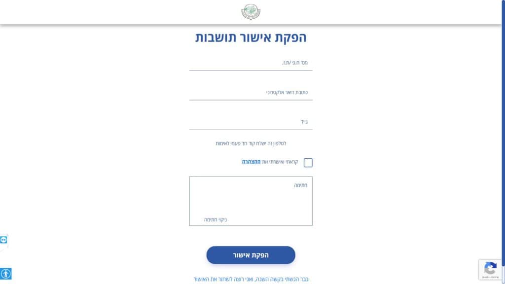 טופס הפקת אישור תושבות חלופה נגישה - כרגע לא קיימת.