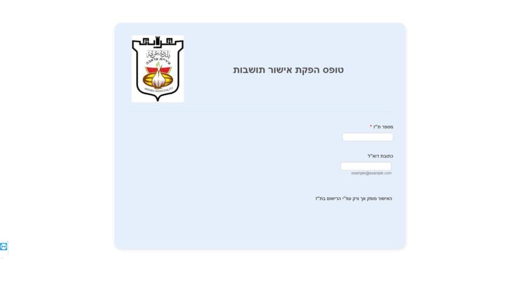 צילום מסך טופס הפקת אישור תושב טופס מקוון