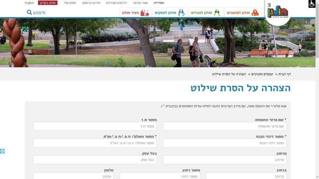 טופס קל » עיריות » עיריות בתל אביב והמרכז » עיריית חולון » הנדסה » טופס הצהרה על הסרת שילוט