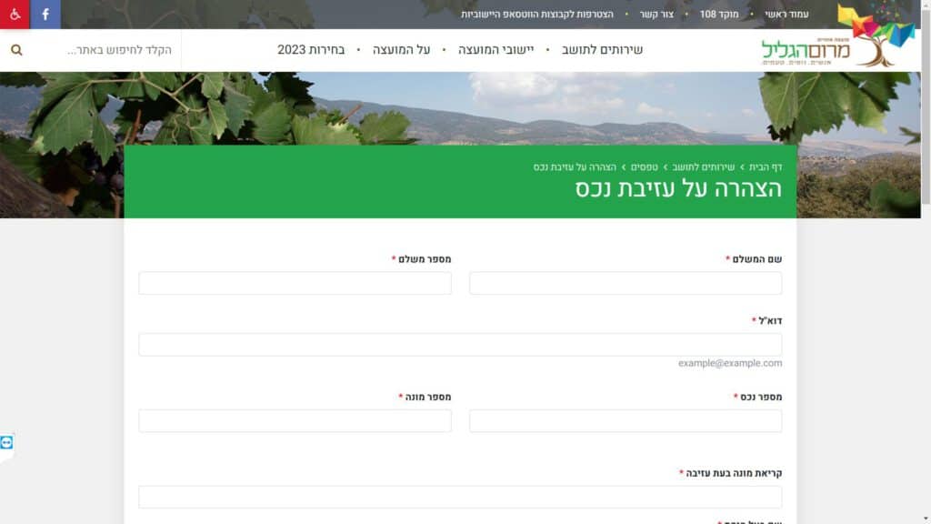 צילום מסך טופס הצהרה על עזיבת נכס טופס מקוון