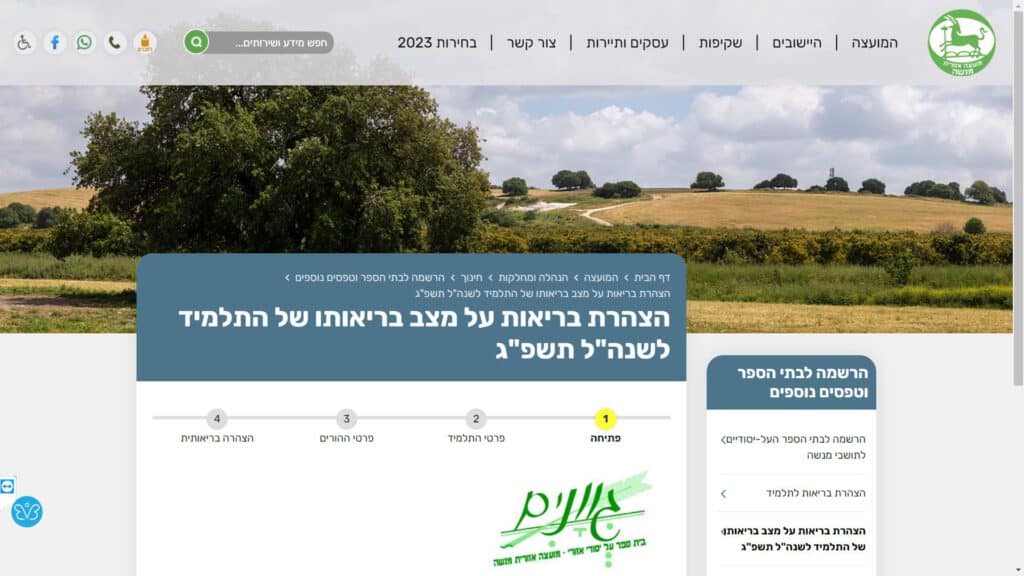 צילום מסך טופס הצהרת בריאות על מצב בריאותו של התלמיד לשנה"ל תשפ"ג טופס מקוון