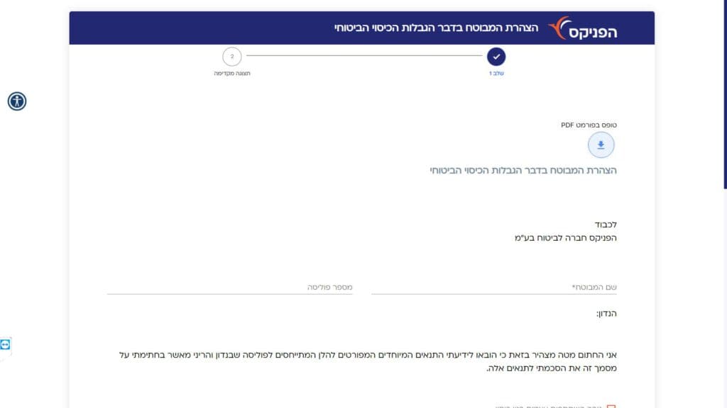 טופס הצהרת המבוטח בדבר הגבלות הכיסוי הביטוחי – ביטוח כללי להורדה, הדפסה ומילוי מקוון