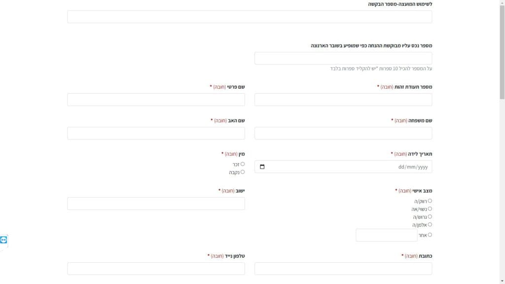 טופס הצהרת עזיבה - מקוון חלופה נגישה - כרגע לא קיימת.