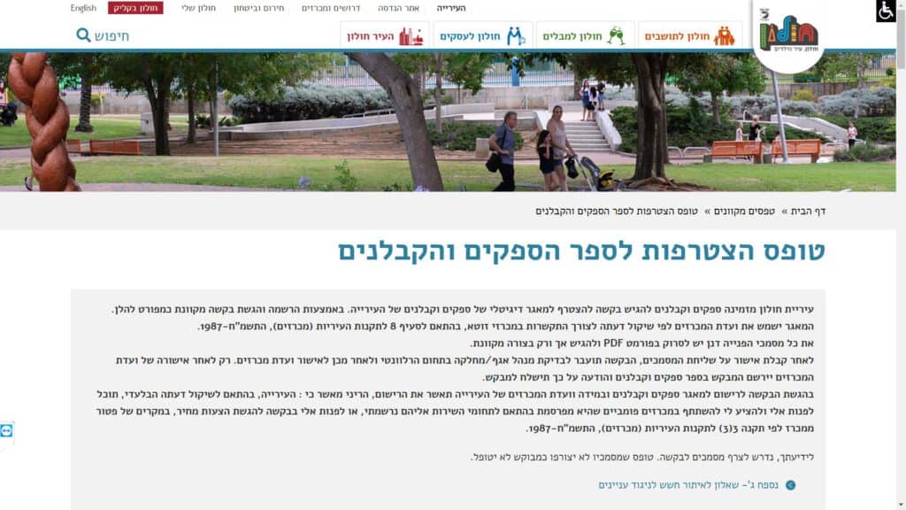 צילום מסך טופס הצטרפות לספר הספקים והקבלנים טופס מקוון
