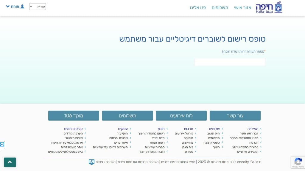 טופס קל » עיריות » עיריות בחיפה והקריות » עיריית חיפה » ארנונה - כללי » טופס הצטרפות לשירות קבלת חשבונות במייל