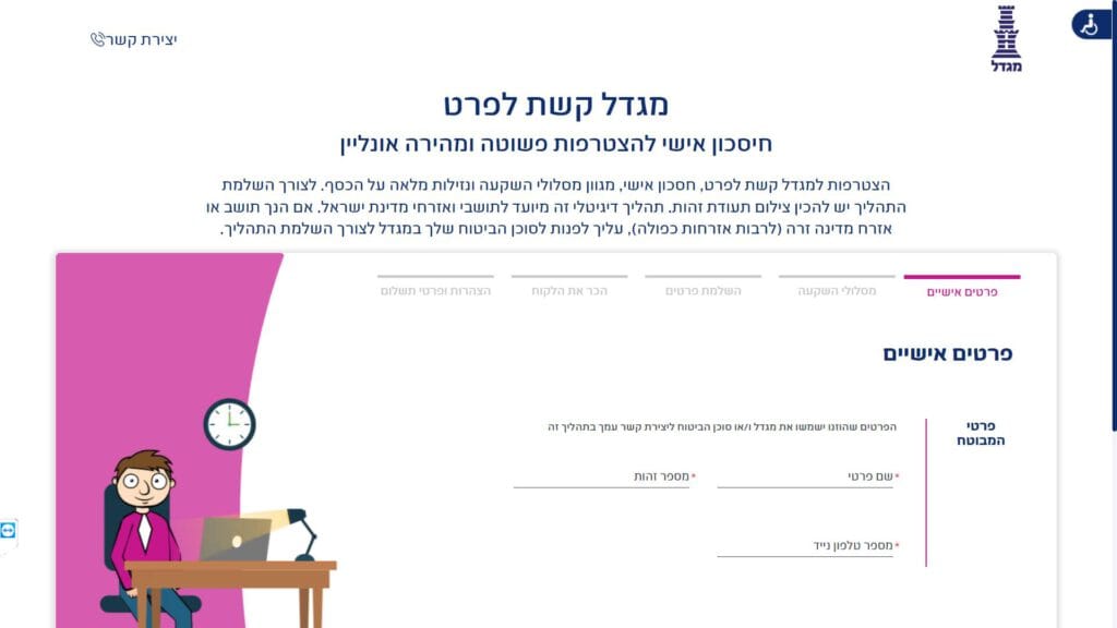 גוף שיתמוך בשאלות על טופס הצעה לביטוח - מגדל קשת לפרט להפקדות שוטפות וחד פעמיות - טופס 211