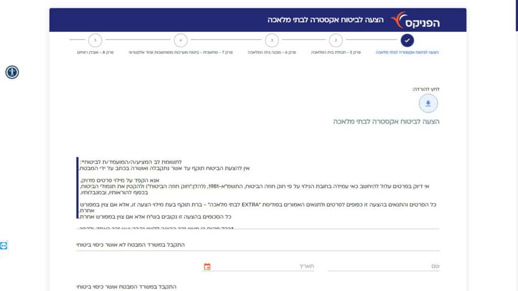 טופס הצעה לביטוח "EXTRA לבתי מלאכה" - ביטוח כללי חלופה נגישה - כרגע לא קיימת.