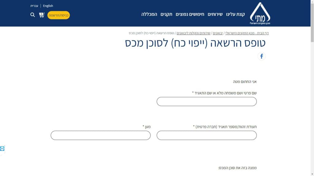 הטופס שייך לקטגוריות: אגפים ממשלתיים, מכון התקנים, יבואנים