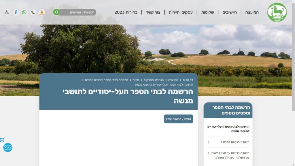 צילום מסך טופס הרשמה לבתי הספר העל - יסודיים לתושבי מנשה טופס מקוון