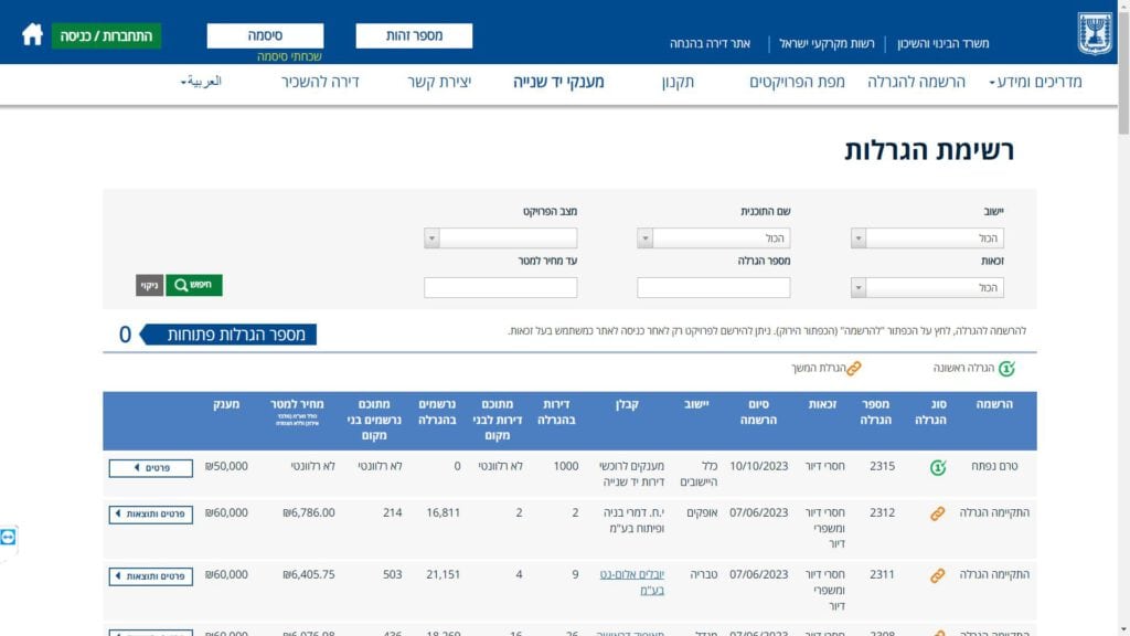 צילום מסך טופס הרשמה להגרלה בתוכניות "דירה בהנחה" טופס מקוון