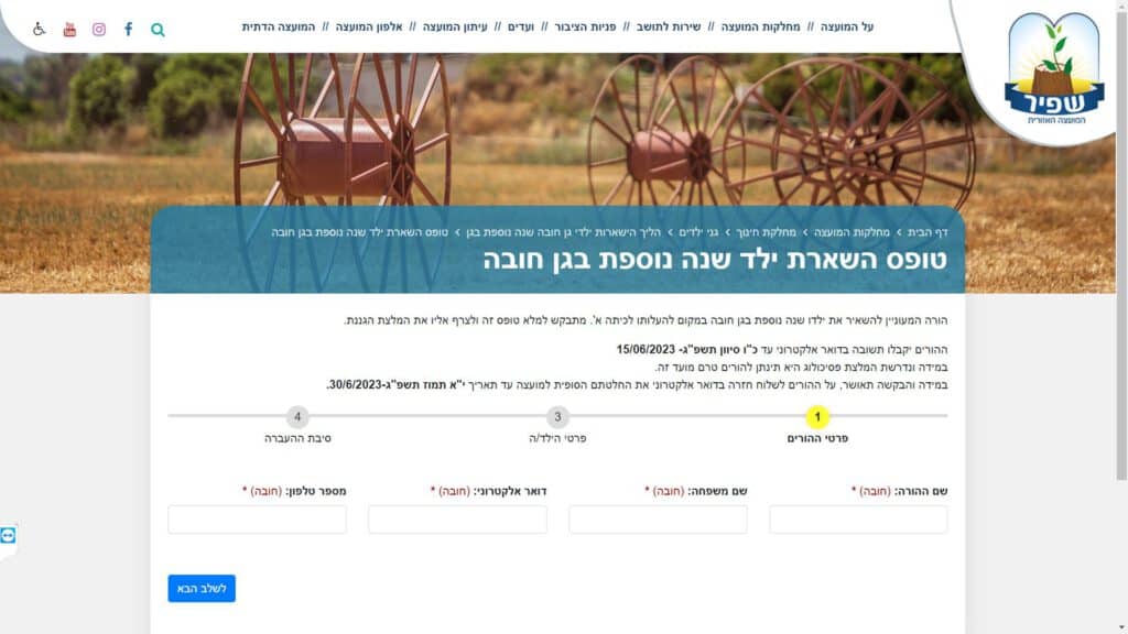 צילום מסך טופס השארת ילד שנה נוספת בגן חובה טופס מקוון