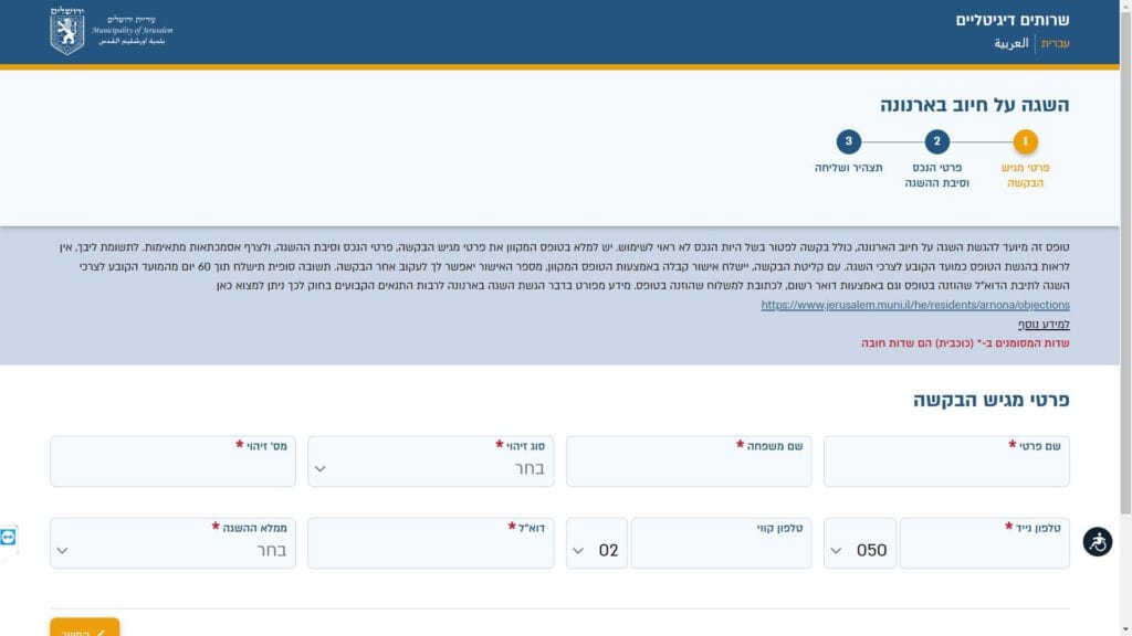 טופס השגה על חיוב בארנונה חלופה נגישה - כרגע לא קיימת.