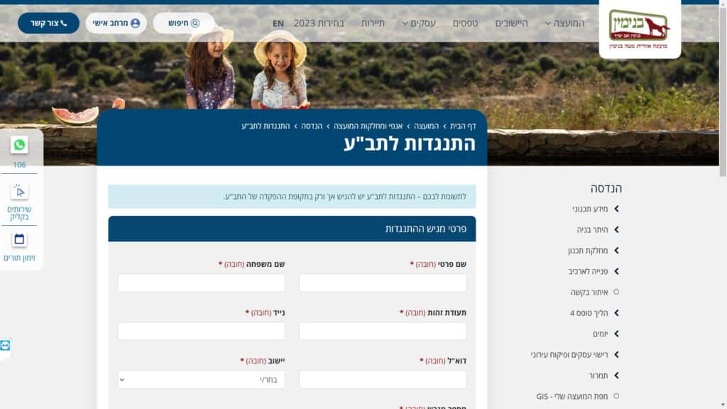 צילום מסך טופס התנגדות לתב"ע טופס מקוון
