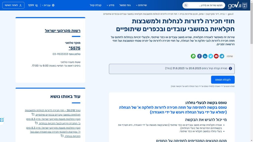 גוף שיתמוך בשאלות על טופס חוזי חכירה לדורות לנחלות ולמשבצות חקלאיות במושבי עובדים ובכפרים שיתופיים