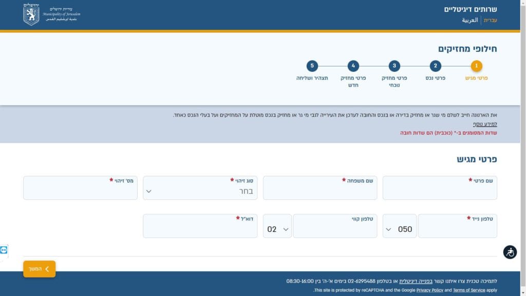 טופס חילופי מחזיקים חלופה נגישה - כרגע לא קיימת.