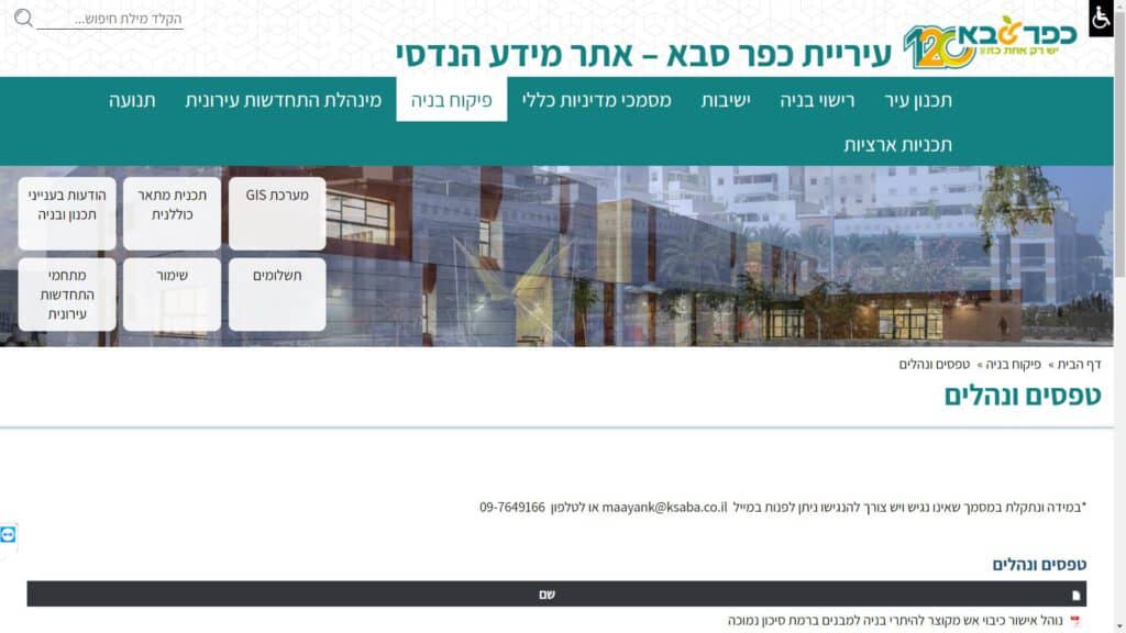 טופס טפסים ונהלים בנושא פיקוח על הבניה (אתר המידע ההנדסי) חלופה נגישה - כרגע לא קיימת.